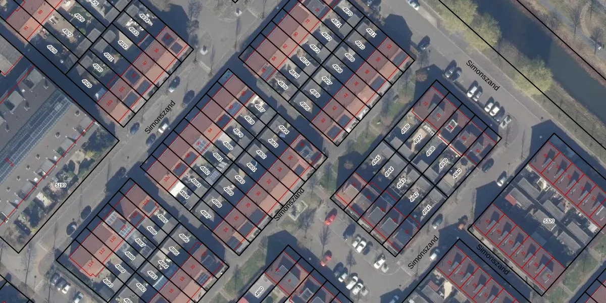Het perceel waarop Simonszand 38 staat heeft een oppervlakte van 125 m². Dit is een middelgroot perceel. De perceeloppervlakte wordt geregistreerd door het Kadaster. Gedetailleerde informatie over de maten van dit perceel kunt u vinden in het rapport Kadastrale kaart met maatvoering van Simonszand 38.