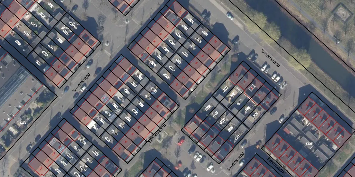 Het perceel waarop Simonszand 40 staat heeft een oppervlakte van 125 m². Dit is een middelgroot perceel. De perceeloppervlakte wordt geregistreerd door het Kadaster. Gedetailleerde informatie over de maten van dit perceel kunt u vinden in het rapport Kadastrale kaart met maatvoering van Simonszand 40.