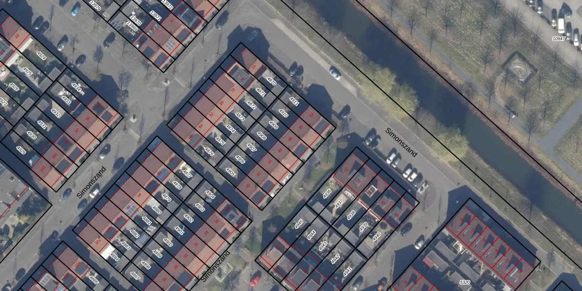 Het perceel waarop Simonszand 48 staat heeft een oppervlakte van 121 m². Dit is een middelgroot perceel. De perceeloppervlakte wordt geregistreerd door het Kadaster. Gedetailleerde informatie over de maten van dit perceel kunt u vinden in het rapport Kadastrale kaart met maatvoering van Simonszand 48.