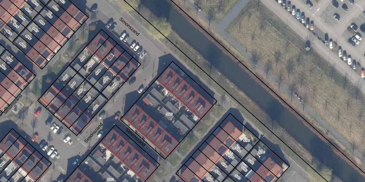 Simonszand 53 is gelegen op kadastraal perceel HLM03AD5320. Deze kadastrale aanduiding is uniek en wordt gebruikt door het Kadaster om eigendomsrechten en andere zakelijke rechten vast te leggen. Het perceel maakt onderdeel uit van de kadastrale gemeente Haarlemmermeer.