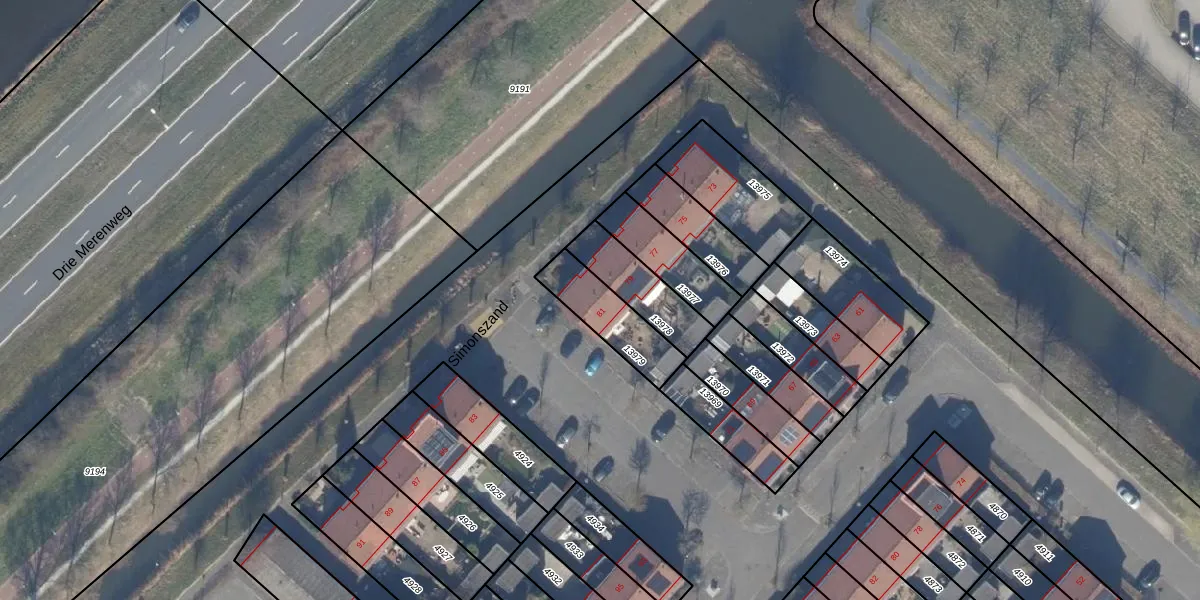 Het perceel waarop Simonszand 81 staat heeft een oppervlakte van 196 m². Dit is een middelgroot perceel. De perceeloppervlakte wordt geregistreerd door het Kadaster. Gedetailleerde informatie over de maten van dit perceel kunt u vinden in het rapport Kadastrale kaart met maatvoering van Simonszand 81.
