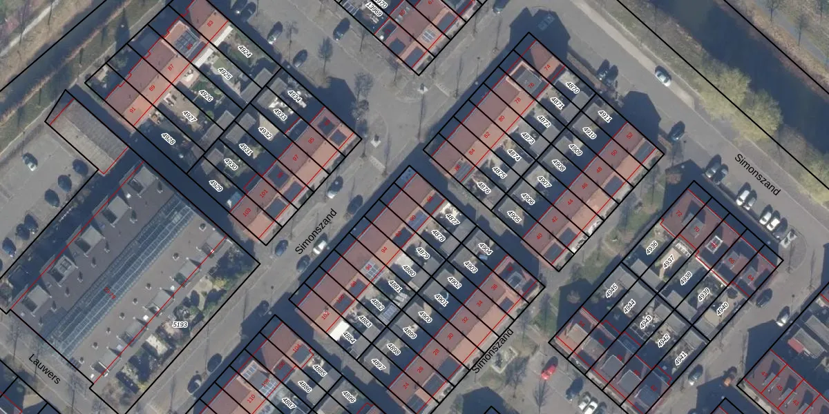 Het perceel waarop Simonszand 90 staat heeft een oppervlakte van 121 m². Dit is een middelgroot perceel. De perceeloppervlakte wordt geregistreerd door het Kadaster. Gedetailleerde informatie over de maten van dit perceel kunt u vinden in het rapport Kadastrale kaart met maatvoering van Simonszand 90.