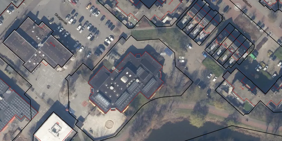 Het perceel waarop Skagerrak 170 staat heeft een oppervlakte van 3850 m². Dit is een zeer groot perceel. De perceeloppervlakte wordt geregistreerd door het Kadaster. Gedetailleerde informatie over de maten van dit perceel kunt u vinden in het rapport Kadastrale kaart met maatvoering van Skagerrak 170.