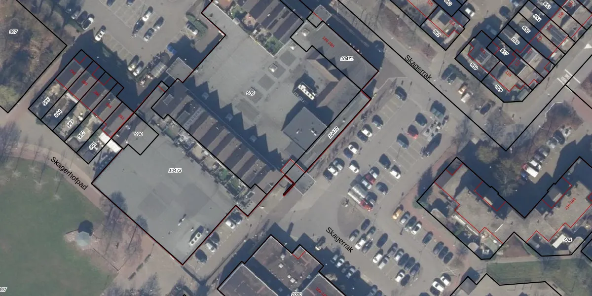 Het perceel waarop Skagerrak 198 staat heeft een oppervlakte van 2640 m². Dit is een zeer groot perceel. De perceeloppervlakte wordt geregistreerd door het Kadaster. Gedetailleerde informatie over de maten van dit perceel kunt u vinden in het rapport Kadastrale kaart met maatvoering van Skagerrak 198.