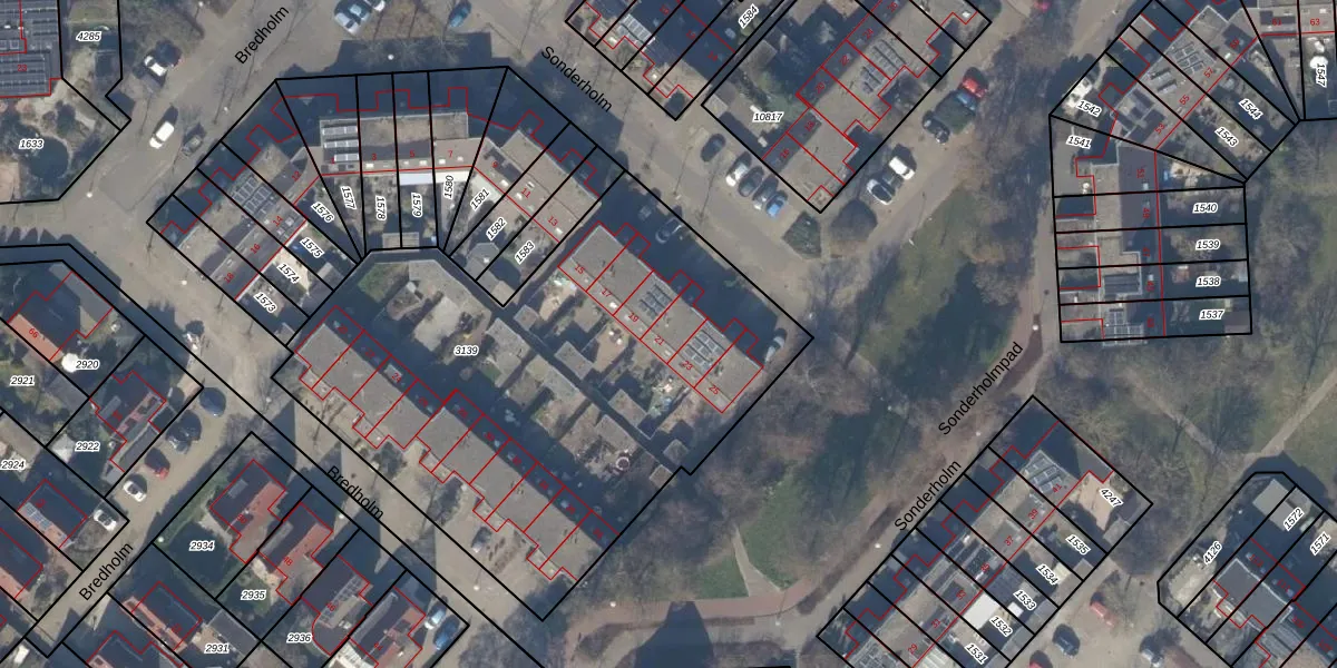 Het perceel waarop Sonderholm 21 staat heeft een oppervlakte van 2726 m². Dit is een zeer groot perceel. De perceeloppervlakte wordt geregistreerd door het Kadaster. Gedetailleerde informatie over de maten van dit perceel kunt u vinden in het rapport Kadastrale kaart met maatvoering van Sonderholm 21.