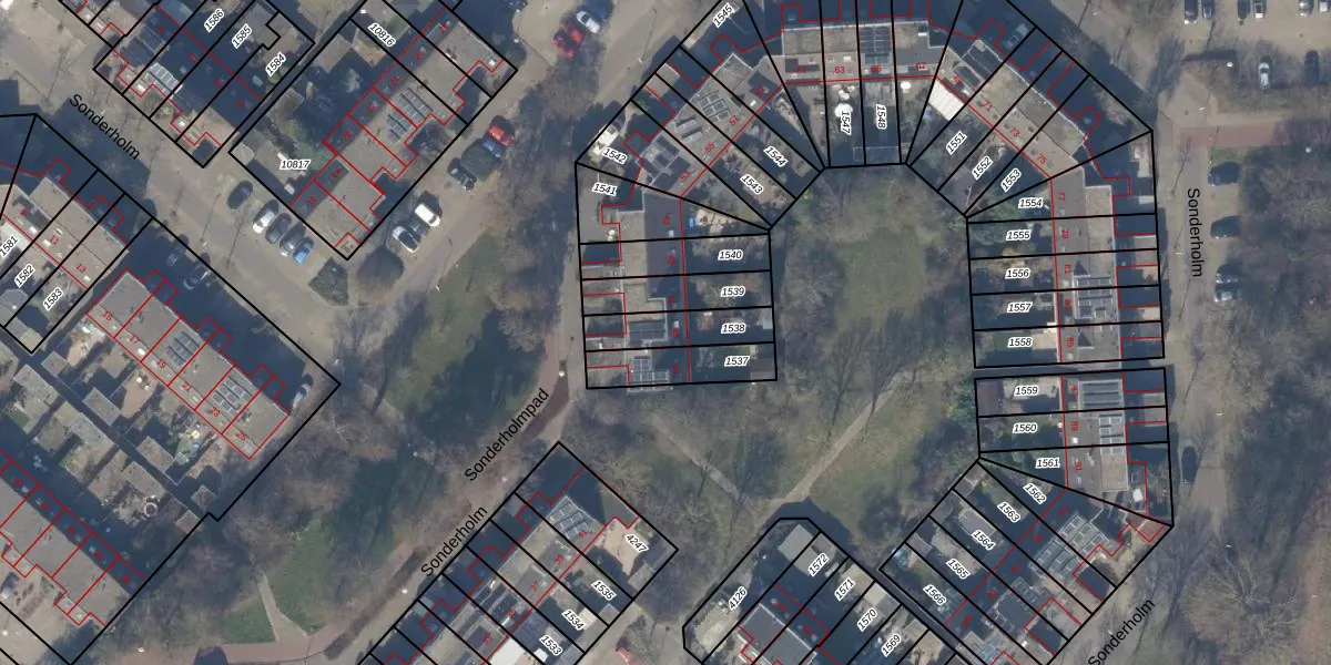 Sonderholm 45 is gelegen op kadastraal perceel HLM03AD1538. Deze kadastrale aanduiding is uniek en wordt gebruikt door het Kadaster om eigendomsrechten en andere zakelijke rechten vast te leggen. Het perceel maakt onderdeel uit van de kadastrale gemeente Haarlemmermeer.