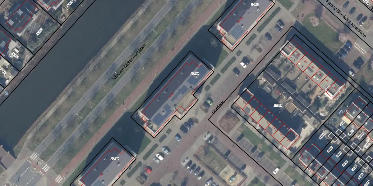 Het perceel waarop Sordello 68 staat heeft een oppervlakte van 865 m². Dit is een groot perceel. De perceeloppervlakte wordt geregistreerd door het Kadaster. Gedetailleerde informatie over de maten van dit perceel kunt u vinden in het rapport Kadastrale kaart met maatvoering van Sordello 68.