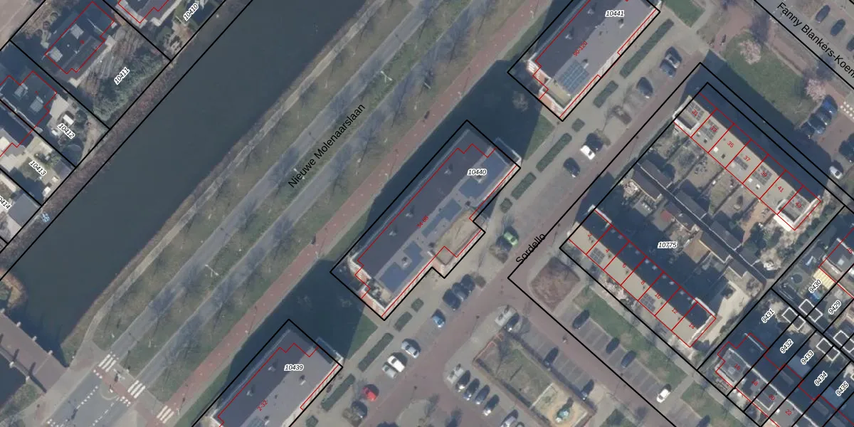 Het perceel waarop Sordello 74 staat heeft een oppervlakte van 865 m². Dit is een groot perceel. De perceeloppervlakte wordt geregistreerd door het Kadaster. Gedetailleerde informatie over de maten van dit perceel kunt u vinden in het rapport Kadastrale kaart met maatvoering van Sordello 74.