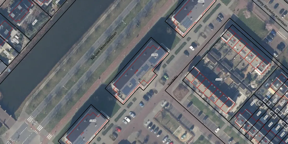 Het perceel waarop Sordello 82 staat heeft een oppervlakte van 865 m². Dit is een groot perceel. De perceeloppervlakte wordt geregistreerd door het Kadaster. Gedetailleerde informatie over de maten van dit perceel kunt u vinden in het rapport Kadastrale kaart met maatvoering van Sordello 82.