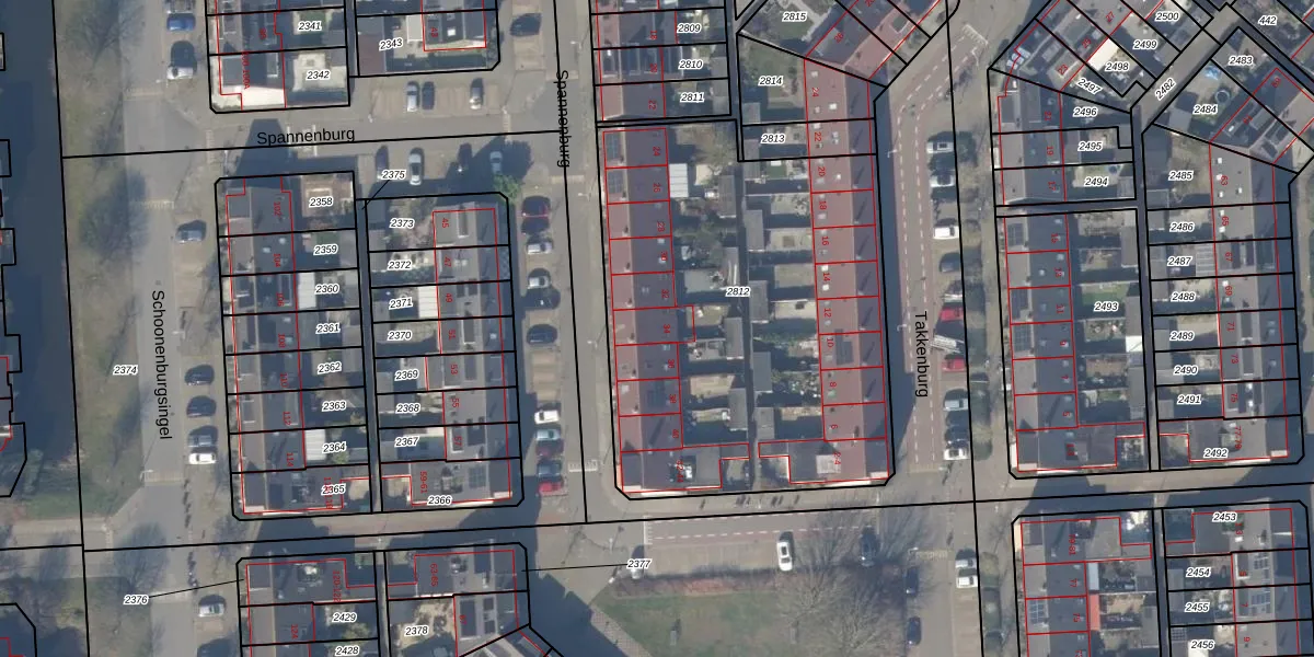 Het perceel waarop Spannenburg 34 staat heeft een oppervlakte van 2284 m². Dit is een zeer groot perceel. De perceeloppervlakte wordt geregistreerd door het Kadaster. Gedetailleerde informatie over de maten van dit perceel kunt u vinden in het rapport Kadastrale kaart met maatvoering van Spannenburg 34.