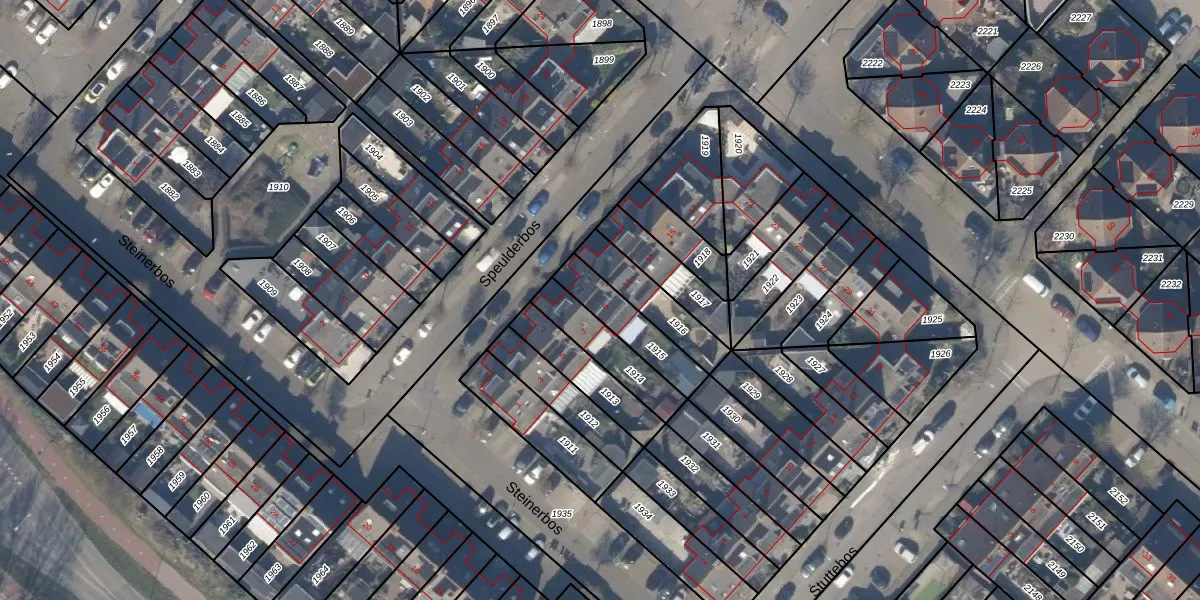 Het perceel waarop Speulderbos 9 staat heeft een oppervlakte van 166 m². Dit is een middelgroot perceel. De perceeloppervlakte wordt geregistreerd door het Kadaster. Gedetailleerde informatie over de maten van dit perceel kunt u vinden in het rapport Kadastrale kaart met maatvoering van Speulderbos 9.