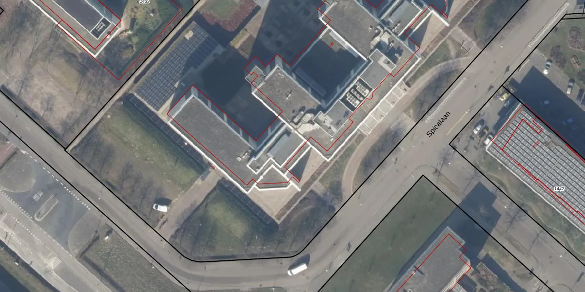 Het perceel waarop Spicalaan 11 staat heeft een oppervlakte van 1,3 ha. Dit is een zeer groot perceel. De perceeloppervlakte wordt geregistreerd door het Kadaster. Gedetailleerde informatie over de maten van dit perceel kunt u vinden in het rapport Kadastrale kaart met maatvoering van Spicalaan 11.