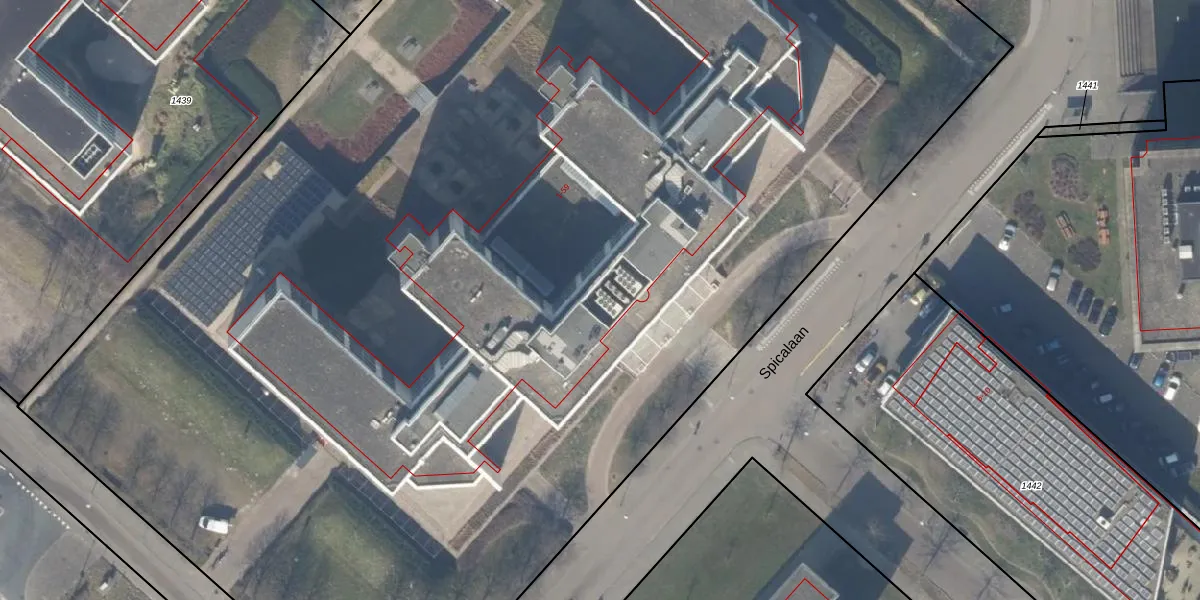 Het perceel waarop Spicalaan 25 staat heeft een oppervlakte van 1,3 ha. Dit is een zeer groot perceel. De perceeloppervlakte wordt geregistreerd door het Kadaster. Gedetailleerde informatie over de maten van dit perceel kunt u vinden in het rapport Kadastrale kaart met maatvoering van Spicalaan 25.