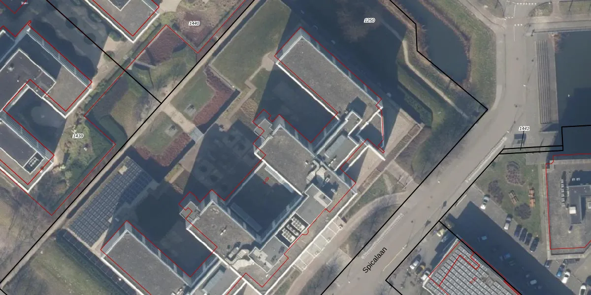 Het perceel waarop Spicalaan 31 staat heeft een oppervlakte van 1,3 ha. Dit is een zeer groot perceel. De perceeloppervlakte wordt geregistreerd door het Kadaster. Gedetailleerde informatie over de maten van dit perceel kunt u vinden in het rapport Kadastrale kaart met maatvoering van Spicalaan 31.