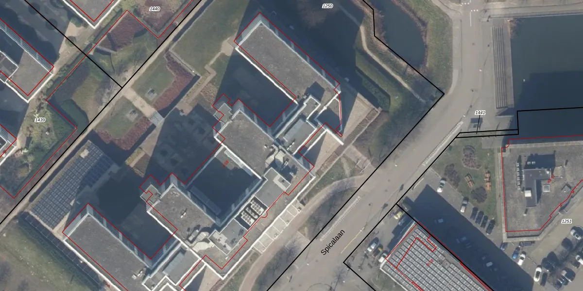 Het perceel waarop Spicalaan 39 staat heeft een oppervlakte van 1,3 ha. Dit is een zeer groot perceel. De perceeloppervlakte wordt geregistreerd door het Kadaster. Gedetailleerde informatie over de maten van dit perceel kunt u vinden in het rapport Kadastrale kaart met maatvoering van Spicalaan 39.