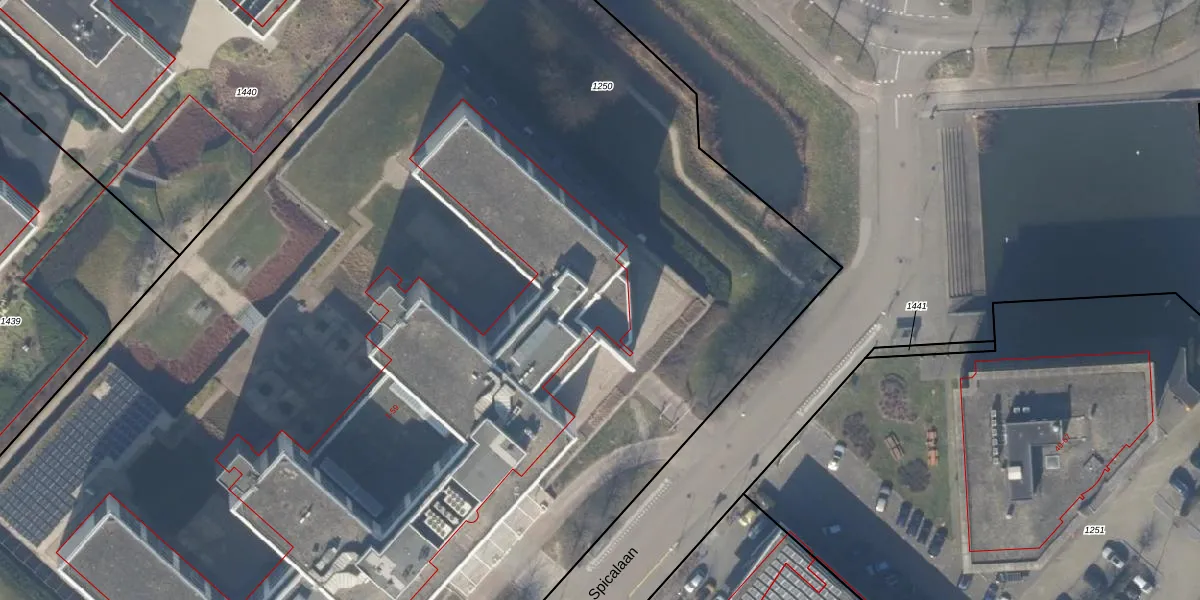 Het perceel waarop Spicalaan 51 staat heeft een oppervlakte van 1,3 ha. Dit is een zeer groot perceel. De perceeloppervlakte wordt geregistreerd door het Kadaster. Gedetailleerde informatie over de maten van dit perceel kunt u vinden in het rapport Kadastrale kaart met maatvoering van Spicalaan 51.
