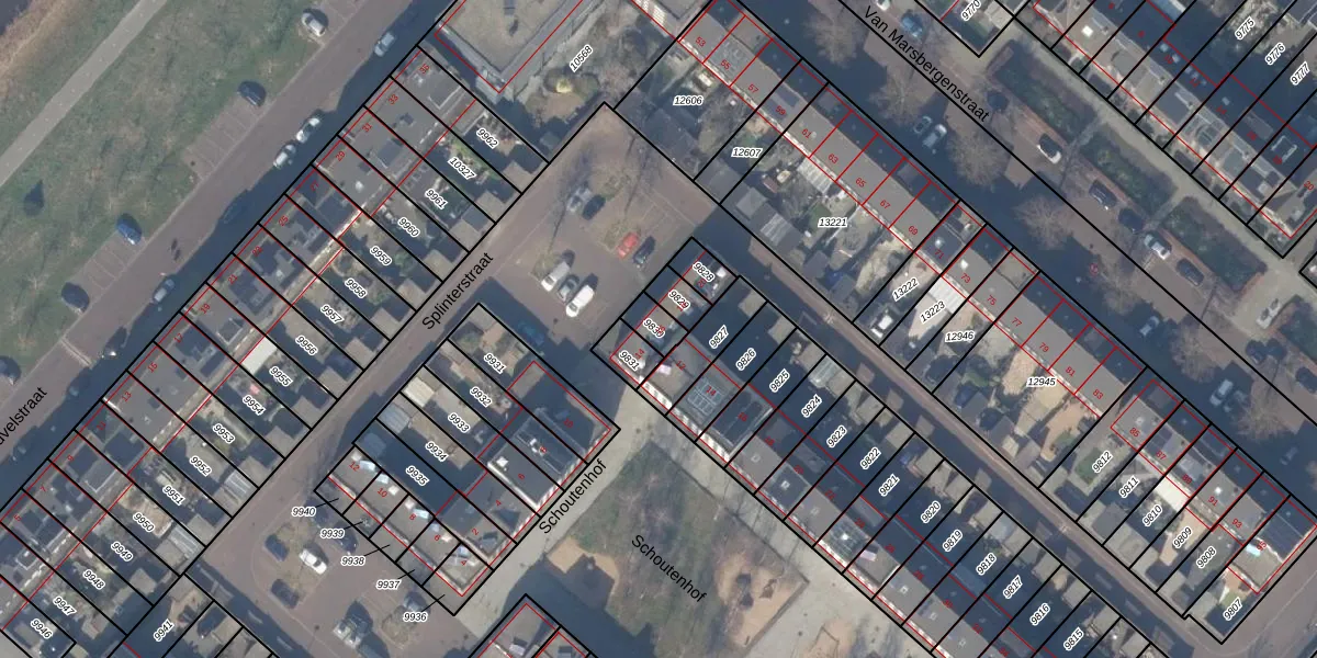 Het perceel waarop Splinterstraat 16 staat heeft een oppervlakte van 50 m². Dit is een klein perceel. De perceeloppervlakte wordt geregistreerd door het Kadaster. Gedetailleerde informatie over de maten van dit perceel kunt u vinden in het rapport Kadastrale kaart met maatvoering van Splinterstraat 16.