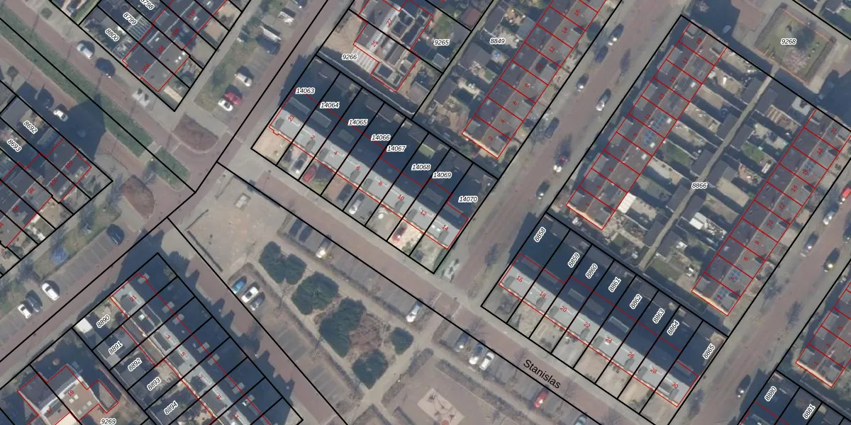 Het perceel waarop Stanislas 12 staat heeft een oppervlakte van 168 m². Dit is een middelgroot perceel. De perceeloppervlakte wordt geregistreerd door het Kadaster. Gedetailleerde informatie over de maten van dit perceel kunt u vinden in het rapport Kadastrale kaart met maatvoering van Stanislas 12.