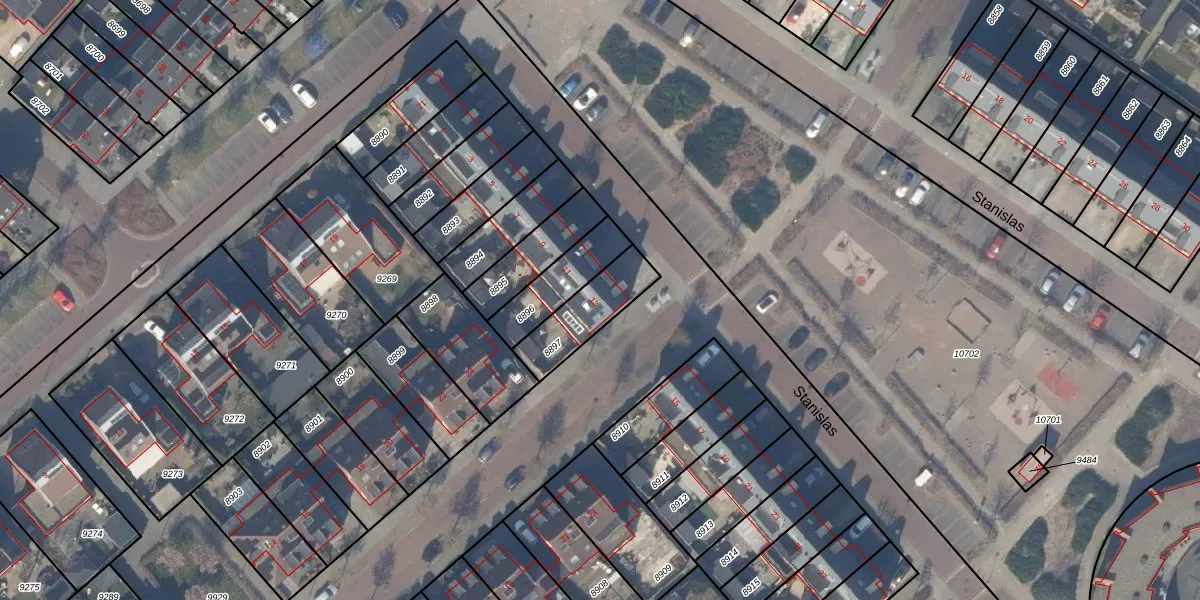 Het perceel waarop Stanislas 13 staat heeft een oppervlakte van 192 m². Dit is een middelgroot perceel. De perceeloppervlakte wordt geregistreerd door het Kadaster. Gedetailleerde informatie over de maten van dit perceel kunt u vinden in het rapport Kadastrale kaart met maatvoering van Stanislas 13.