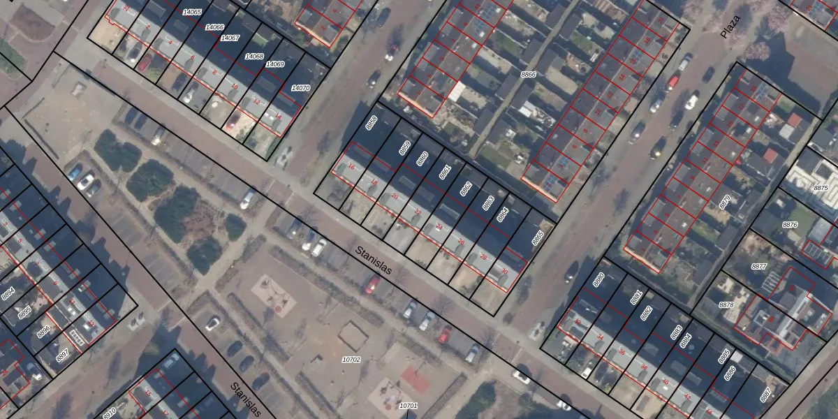 Het perceel waarop Stanislas 22 staat heeft een oppervlakte van 170 m². Dit is een middelgroot perceel. De perceeloppervlakte wordt geregistreerd door het Kadaster. Gedetailleerde informatie over de maten van dit perceel kunt u vinden in het rapport Kadastrale kaart met maatvoering van Stanislas 22.