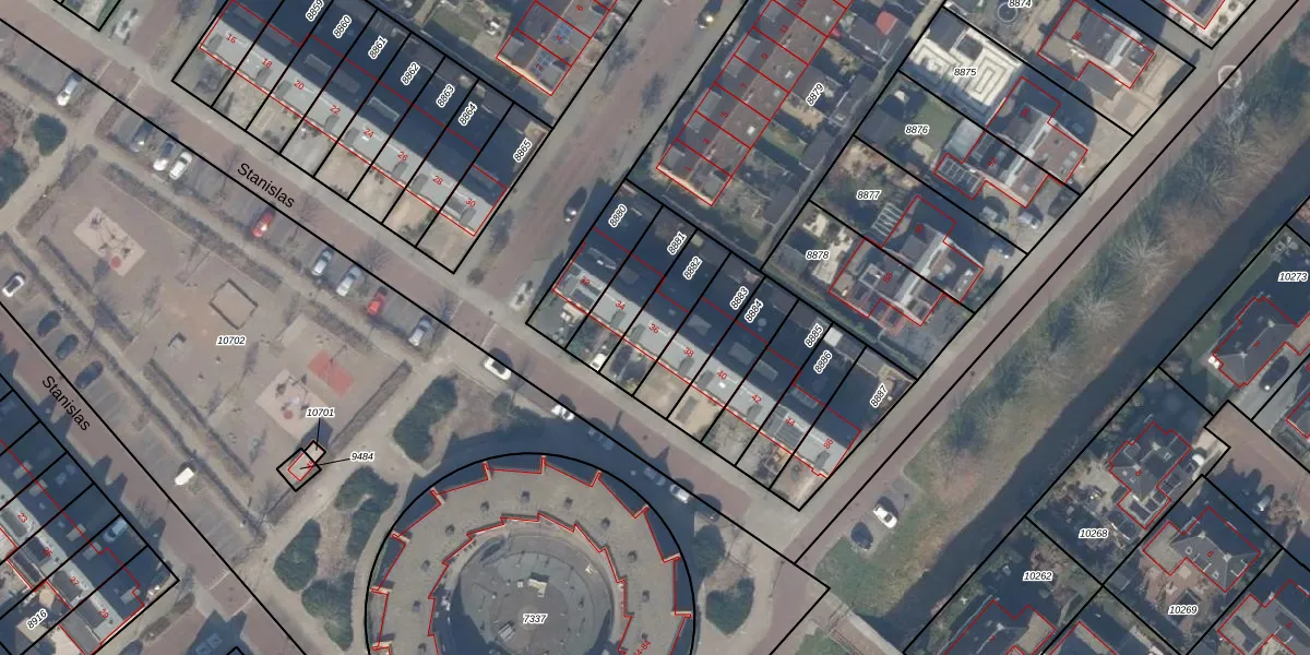 Het perceel waarop Stanislas 36 staat heeft een oppervlakte van 169 m². Dit is een middelgroot perceel. De perceeloppervlakte wordt geregistreerd door het Kadaster. Gedetailleerde informatie over de maten van dit perceel kunt u vinden in het rapport Kadastrale kaart met maatvoering van Stanislas 36.