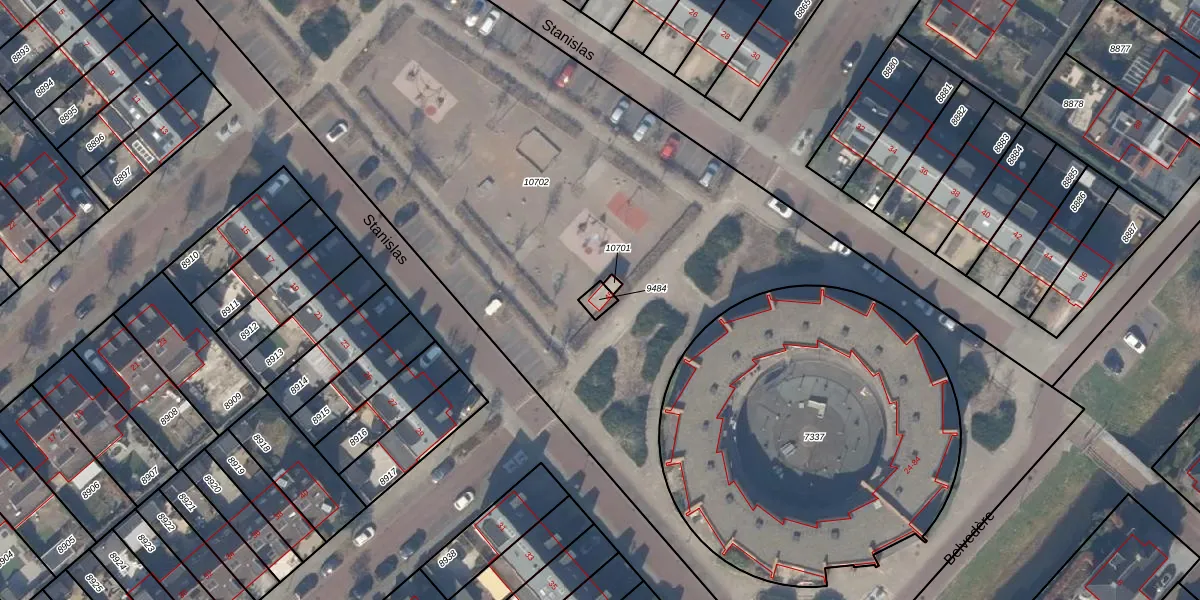 Het perceel waarop Stanislas 45 staat heeft een oppervlakte van 22 m². Dit is een klein perceel. De perceeloppervlakte wordt geregistreerd door het Kadaster. Gedetailleerde informatie over de maten van dit perceel kunt u vinden in het rapport Kadastrale kaart met maatvoering van Stanislas 45.