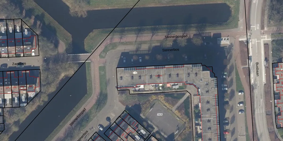 Het perceel waarop Steinerbos 117 staat heeft een oppervlakte van 2172 m². Dit is een zeer groot perceel. De perceeloppervlakte wordt geregistreerd door het Kadaster. Gedetailleerde informatie over de maten van dit perceel kunt u vinden in het rapport Kadastrale kaart met maatvoering van Steinerbos 117.