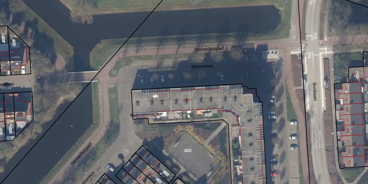 Het perceel waarop Steinerbos 121 staat heeft een oppervlakte van 2172 m². Dit is een zeer groot perceel. De perceeloppervlakte wordt geregistreerd door het Kadaster. Gedetailleerde informatie over de maten van dit perceel kunt u vinden in het rapport Kadastrale kaart met maatvoering van Steinerbos 121.
