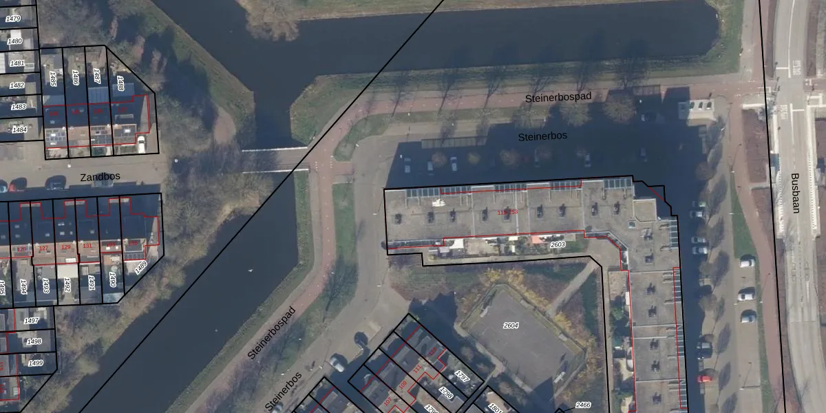 Het perceel waarop Steinerbos 127 staat heeft een oppervlakte van 2172 m². Dit is een zeer groot perceel. De perceeloppervlakte wordt geregistreerd door het Kadaster. Gedetailleerde informatie over de maten van dit perceel kunt u vinden in het rapport Kadastrale kaart met maatvoering van Steinerbos 127.