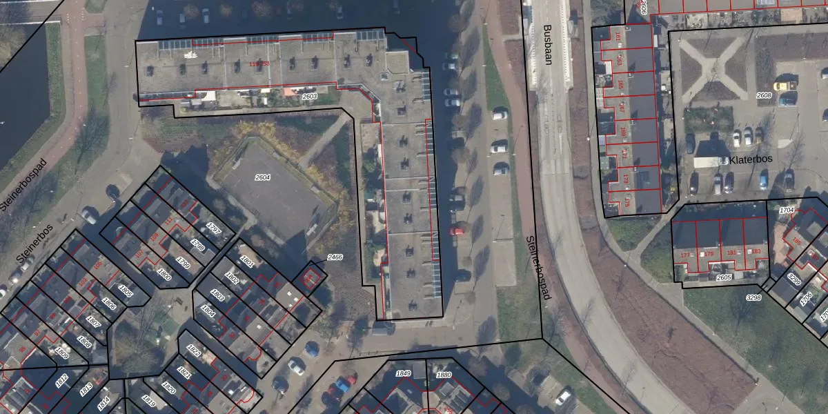 Het perceel waarop Steinerbos 151 staat heeft een oppervlakte van 2172 m². Dit is een zeer groot perceel. De perceeloppervlakte wordt geregistreerd door het Kadaster. Gedetailleerde informatie over de maten van dit perceel kunt u vinden in het rapport Kadastrale kaart met maatvoering van Steinerbos 151.