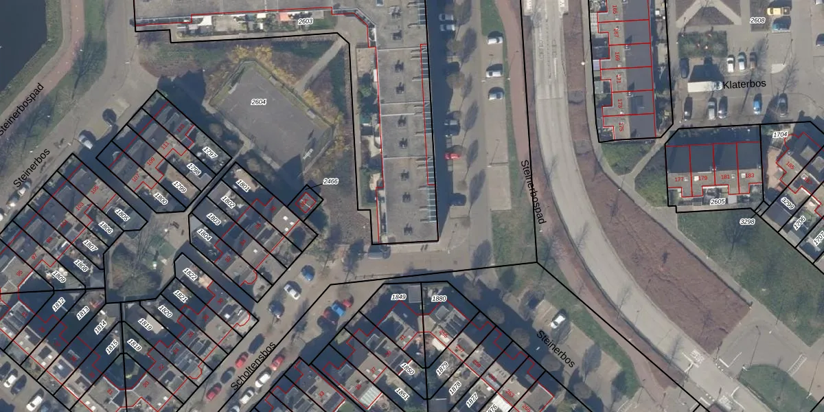 Het perceel waarop Steinerbos 157 staat heeft een oppervlakte van 2172 m². Dit is een zeer groot perceel. De perceeloppervlakte wordt geregistreerd door het Kadaster. Gedetailleerde informatie over de maten van dit perceel kunt u vinden in het rapport Kadastrale kaart met maatvoering van Steinerbos 157.