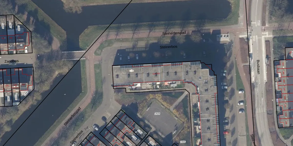 Het perceel waarop Steinerbos 169 staat heeft een oppervlakte van 2172 m². Dit is een zeer groot perceel. De perceeloppervlakte wordt geregistreerd door het Kadaster. Gedetailleerde informatie over de maten van dit perceel kunt u vinden in het rapport Kadastrale kaart met maatvoering van Steinerbos 169.