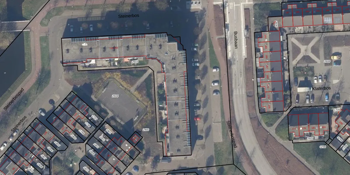 Het perceel waarop Steinerbos 183 staat heeft een oppervlakte van 2172 m². Dit is een zeer groot perceel. De perceeloppervlakte wordt geregistreerd door het Kadaster. Gedetailleerde informatie over de maten van dit perceel kunt u vinden in het rapport Kadastrale kaart met maatvoering van Steinerbos 183.