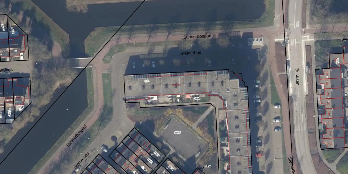 Het perceel waarop Steinerbos 201 staat heeft een oppervlakte van 2172 m². Dit is een zeer groot perceel. De perceeloppervlakte wordt geregistreerd door het Kadaster. Gedetailleerde informatie over de maten van dit perceel kunt u vinden in het rapport Kadastrale kaart met maatvoering van Steinerbos 201.