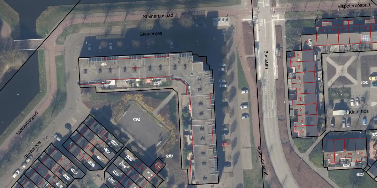 Het perceel waarop Steinerbos 243 staat heeft een oppervlakte van 2172 m². Dit is een zeer groot perceel. De perceeloppervlakte wordt geregistreerd door het Kadaster. Gedetailleerde informatie over de maten van dit perceel kunt u vinden in het rapport Kadastrale kaart met maatvoering van Steinerbos 243.