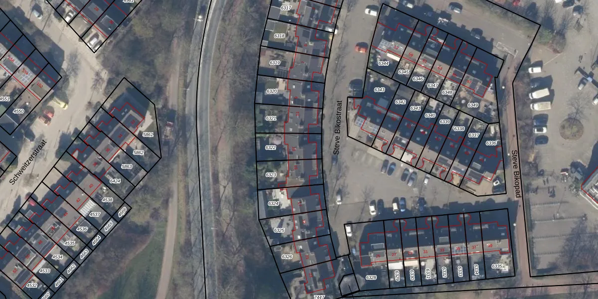 Steve Bikostraat 13 is gelegen op kadastraal perceel HLM03D6322. Deze kadastrale aanduiding is uniek en wordt gebruikt door het Kadaster om eigendomsrechten en andere zakelijke rechten vast te leggen. Het perceel maakt onderdeel uit van de kadastrale gemeente Haarlemmermeer.