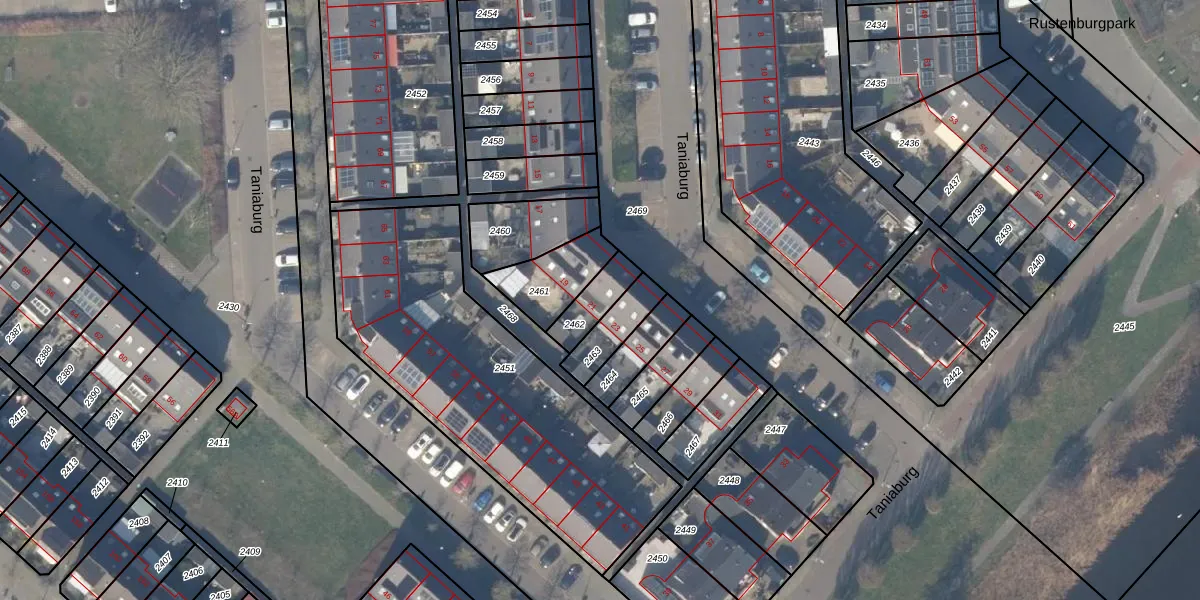 Het perceel waarop Taniaburg 21 staat heeft een oppervlakte van 99 m². Dit is een klein perceel. De perceeloppervlakte wordt geregistreerd door het Kadaster. Gedetailleerde informatie over de maten van dit perceel kunt u vinden in het rapport Kadastrale kaart met maatvoering van Taniaburg 21.