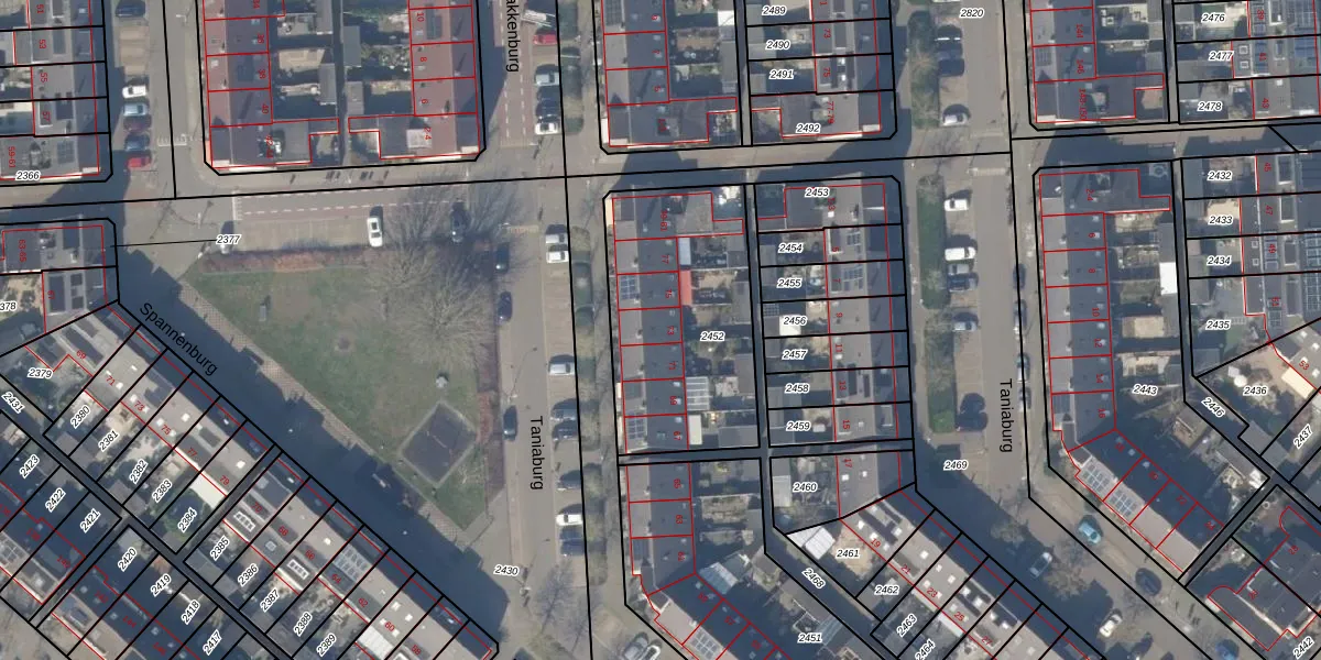 Taniaburg 73 is gelegen op kadastraal perceel HLM03Q2452. Deze kadastrale aanduiding is uniek en wordt gebruikt door het Kadaster om eigendomsrechten en andere zakelijke rechten vast te leggen. Het perceel maakt onderdeel uit van de kadastrale gemeente Haarlemmermeer.