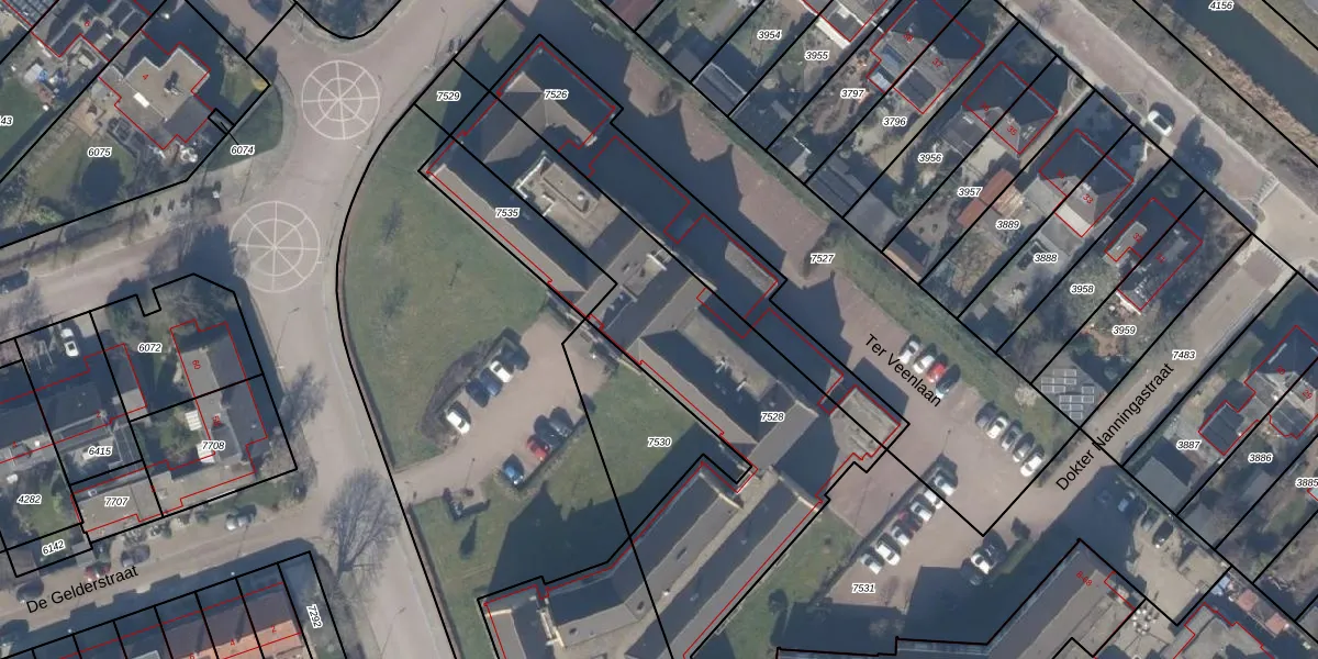 Het perceel waarop Ter Veenlaan 201 staat heeft een oppervlakte van 1596 m². Dit is een zeer groot perceel. De perceeloppervlakte wordt geregistreerd door het Kadaster. Gedetailleerde informatie over de maten van dit perceel kunt u vinden in het rapport Kadastrale kaart met maatvoering van Ter Veenlaan 201.