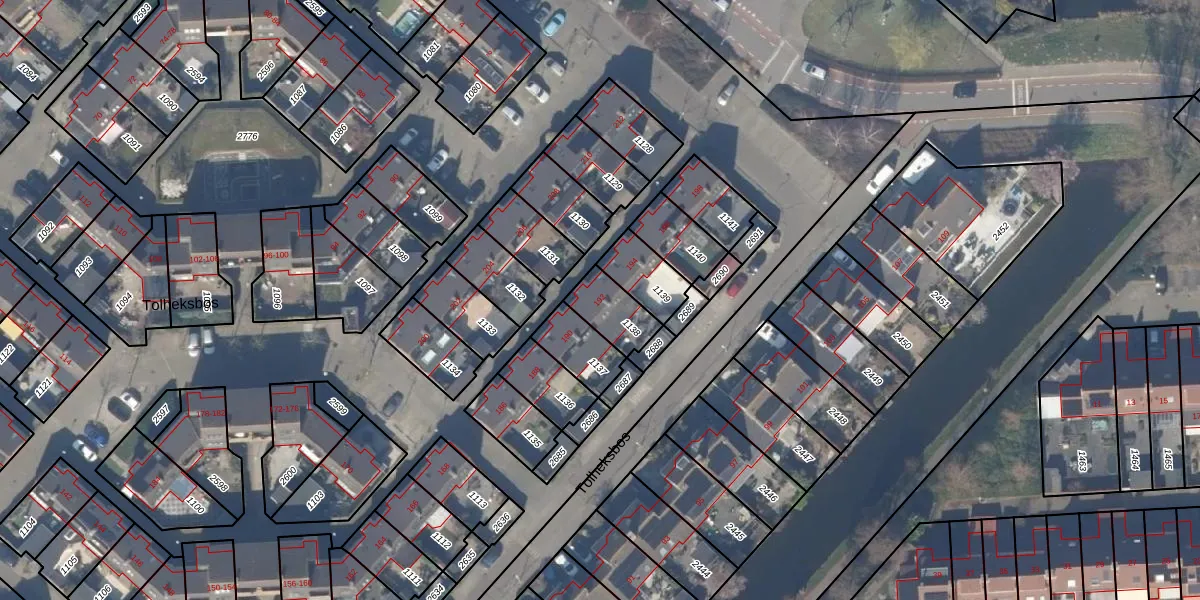 Het perceel waarop Tolheksbos 192 staat heeft een oppervlakte van 121 m². Dit is een middelgroot perceel. De perceeloppervlakte wordt geregistreerd door het Kadaster. Gedetailleerde informatie over de maten van dit perceel kunt u vinden in het rapport Kadastrale kaart met maatvoering van Tolheksbos 192.