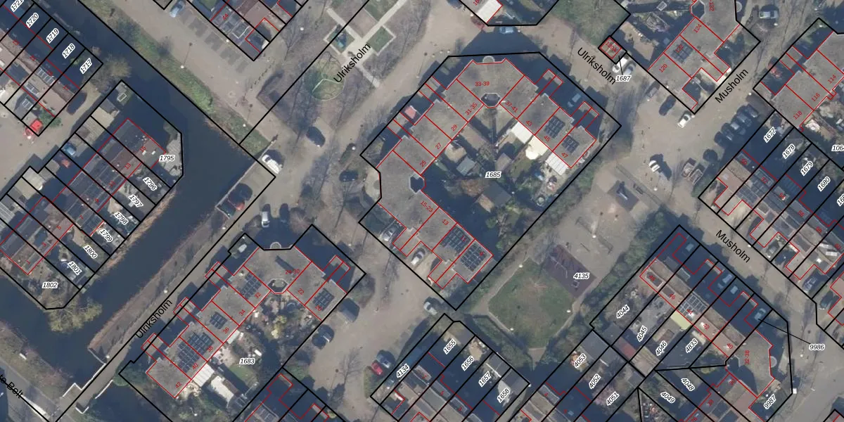Het perceel waarop Ulriksholm 15 staat heeft een oppervlakte van 2184 m². Dit is een zeer groot perceel. De perceeloppervlakte wordt geregistreerd door het Kadaster. Gedetailleerde informatie over de maten van dit perceel kunt u vinden in het rapport Kadastrale kaart met maatvoering van Ulriksholm 15.