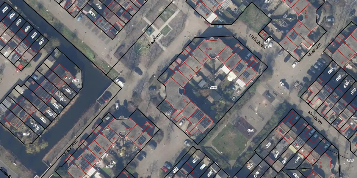 Het perceel waarop Ulriksholm 21 staat heeft een oppervlakte van 2184 m². Dit is een zeer groot perceel. De perceeloppervlakte wordt geregistreerd door het Kadaster. Gedetailleerde informatie over de maten van dit perceel kunt u vinden in het rapport Kadastrale kaart met maatvoering van Ulriksholm 21.