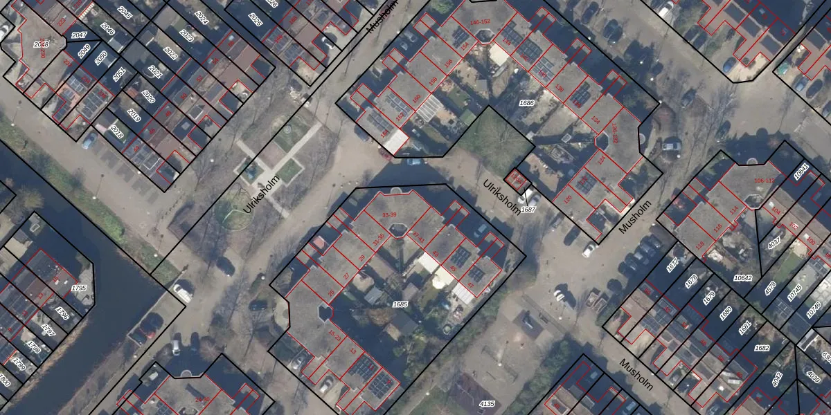 Het perceel waarop Ulriksholm 39 staat heeft een oppervlakte van 2184 m². Dit is een zeer groot perceel. De perceeloppervlakte wordt geregistreerd door het Kadaster. Gedetailleerde informatie over de maten van dit perceel kunt u vinden in het rapport Kadastrale kaart met maatvoering van Ulriksholm 39.