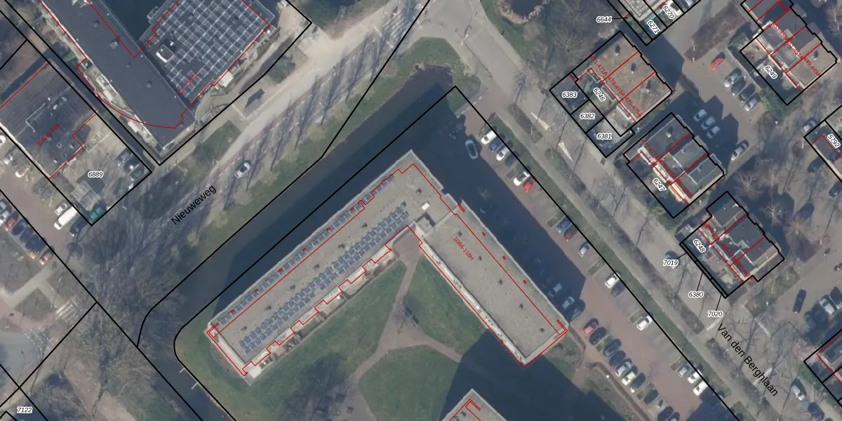 Het perceel waarop Van den Berghlaan 112-C staat heeft een oppervlakte van 1,1 ha. Dit is een zeer groot perceel. De perceeloppervlakte wordt geregistreerd door het Kadaster. Gedetailleerde informatie over de maten van dit perceel kunt u vinden in het rapport Kadastrale kaart met maatvoering van Van den Berghlaan 112-C.