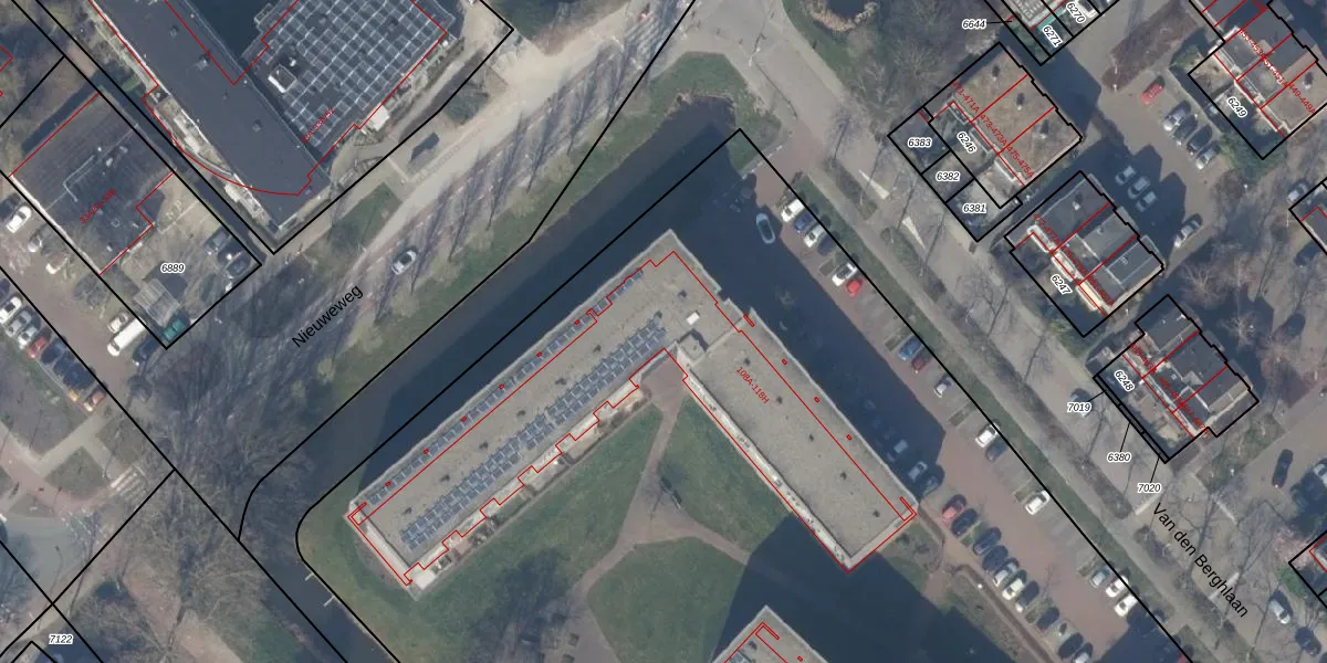 Het perceel waarop Van den Berghlaan 114-E staat heeft een oppervlakte van 1,1 ha. Dit is een zeer groot perceel. De perceeloppervlakte wordt geregistreerd door het Kadaster. Gedetailleerde informatie over de maten van dit perceel kunt u vinden in het rapport Kadastrale kaart met maatvoering van Van den Berghlaan 114-E.