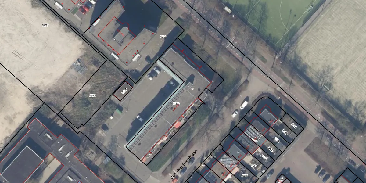 Het perceel waarop Van den Berghlaan 168 staat heeft een oppervlakte van 1232 m². Dit is een zeer groot perceel. De perceeloppervlakte wordt geregistreerd door het Kadaster. Gedetailleerde informatie over de maten van dit perceel kunt u vinden in het rapport Kadastrale kaart met maatvoering van Van den Berghlaan 168.
