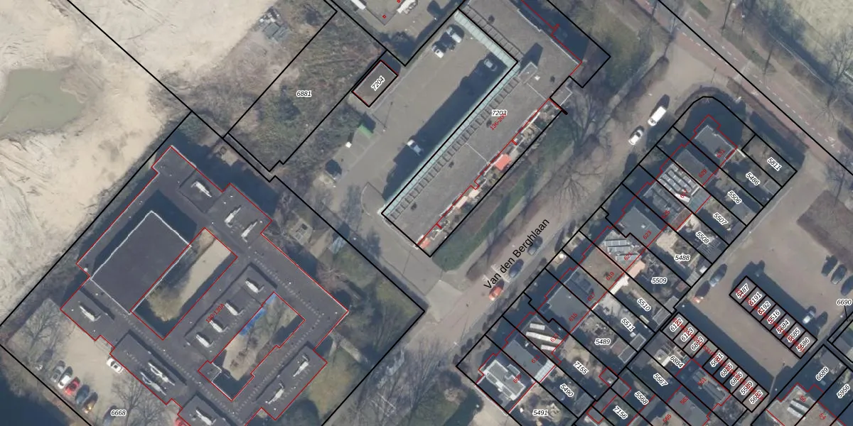 Het perceel waarop Van den Berghlaan 180 staat heeft een oppervlakte van 1232 m². Dit is een zeer groot perceel. De perceeloppervlakte wordt geregistreerd door het Kadaster. Gedetailleerde informatie over de maten van dit perceel kunt u vinden in het rapport Kadastrale kaart met maatvoering van Van den Berghlaan 180.