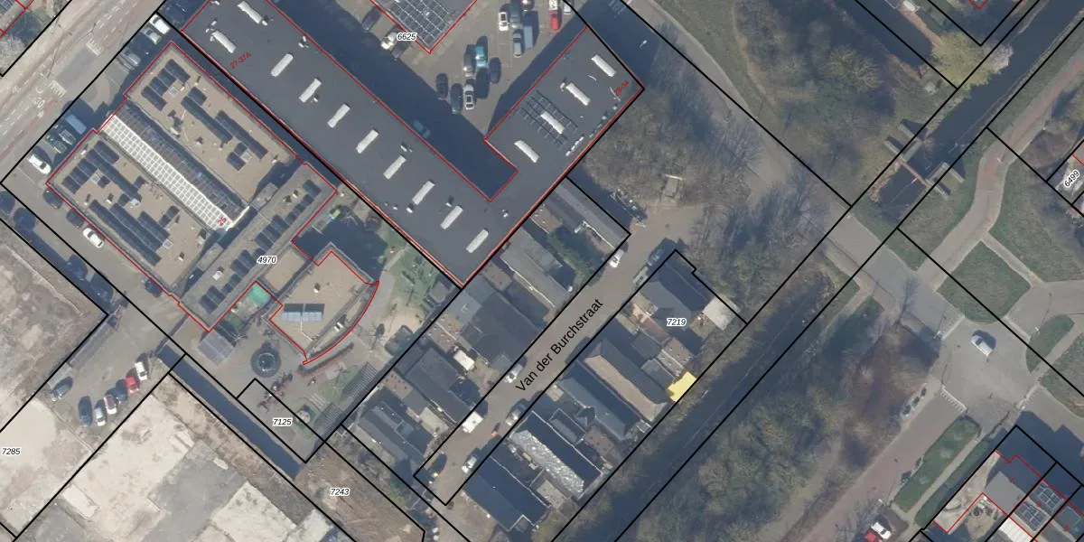 Het perceel waarop Van der Burchstraat 20 staat heeft een oppervlakte van 2275 m². Dit is een zeer groot perceel. De perceeloppervlakte wordt geregistreerd door het Kadaster. Gedetailleerde informatie over de maten van dit perceel kunt u vinden in het rapport Kadastrale kaart met maatvoering van Van der Burchstraat 20.
