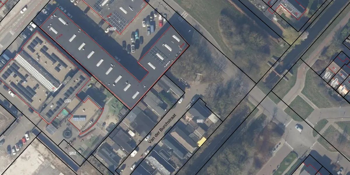 Het perceel waarop Van der Burchstraat 22 staat heeft een oppervlakte van 2275 m². Dit is een zeer groot perceel. De perceeloppervlakte wordt geregistreerd door het Kadaster. Gedetailleerde informatie over de maten van dit perceel kunt u vinden in het rapport Kadastrale kaart met maatvoering van Van der Burchstraat 22.