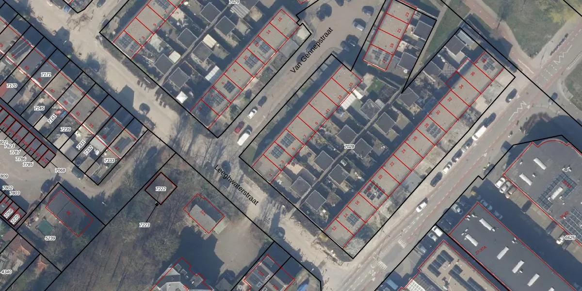 Het perceel waarop Van Gennepstraat 5 staat heeft een oppervlakte van 4005 m². Dit is een zeer groot perceel. De perceeloppervlakte wordt geregistreerd door het Kadaster. Gedetailleerde informatie over de maten van dit perceel kunt u vinden in het rapport Kadastrale kaart met maatvoering van Van Gennepstraat 5.